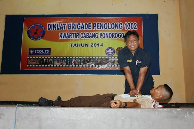 Dalam rangka menambah jumlah anggota Brigade Penolong 1302 Kwartir Cabang Ponorogo tanggal 29-31 Nopember 2014 mengadakan diklat anggota baru tahun 2014 yang di ikuti oleh 60 orang peserta bertempat di pusdiklat kwarcab ponorogo, salah satu materi pokok yang diberikan pada anggota baru adalah tentang Pertolongan Pertama.